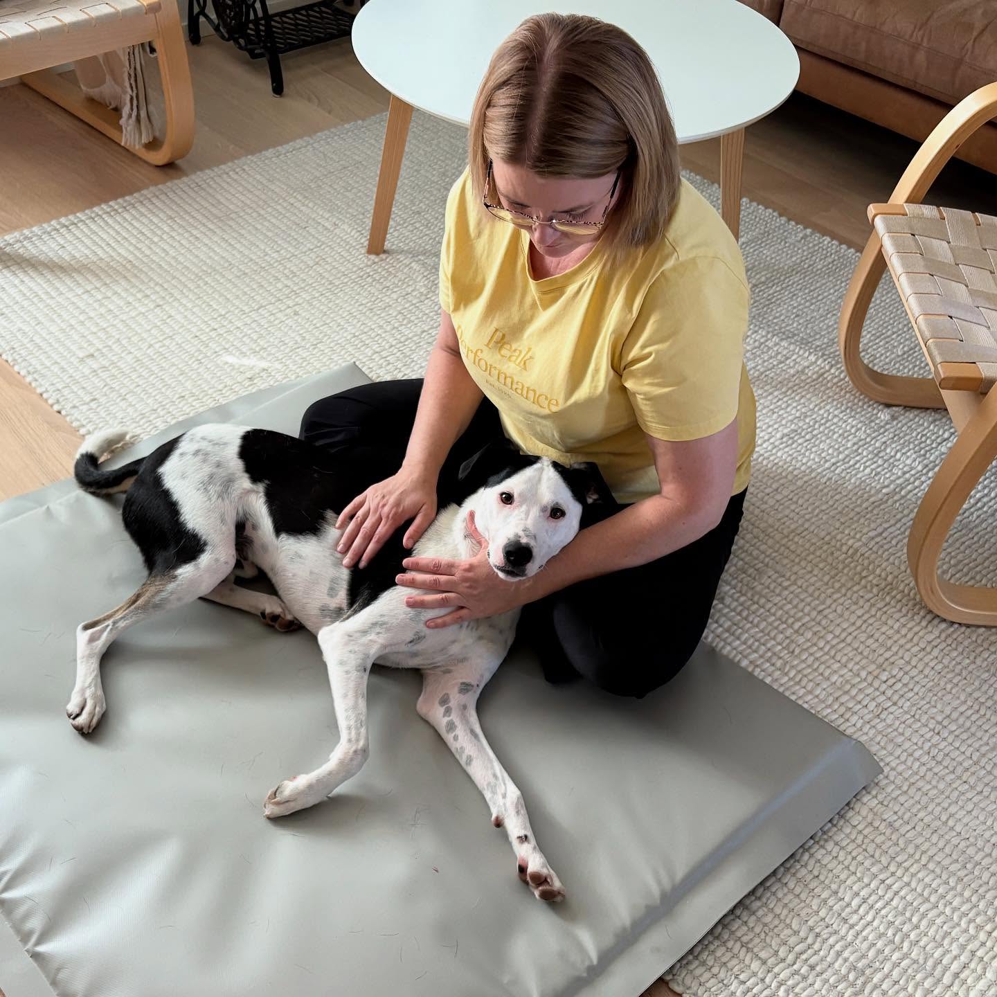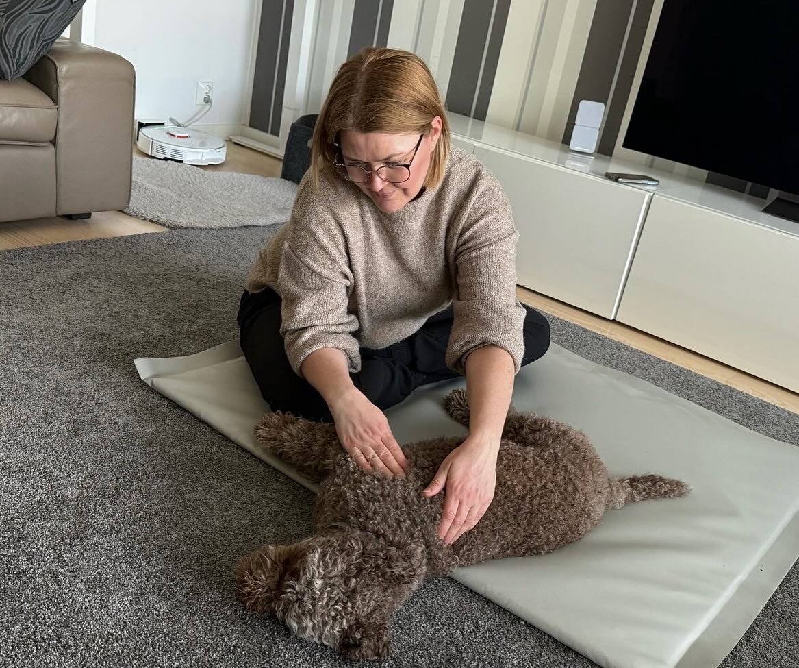 Toisinaan tilanne voi toimia myös käsittelyharjoituksena, mikäli koira on nuori tai ei muusta syystä ole vielä tottunut (erityisesti vieraan ihmisen) käsittelyyn. Toisella tai kolmannella kerralla varautuneempi koira luottaa yleensä jo enemmän ja antautuu käsittelylle helpommin. Jos koira ei pidä hieronta-alustasta, niin hieronta voidaan tehdä myös jossain muussa, koiralle itselleen mieluisassa paikassa. Optimaalisin tilanne hierojan näkökulmasta on silloin, kun koira makaa lattialla kyljellään rentona, mutta tämä ei kaikkien koirien kohdalla ole mahdollista, ja silloin käsittely voidaan tehdä myös esim. koiran istuessa. Minulle tärkeää on koiralähtöisyys ja koiran kokonaisvaltainen hyvinvointi, jonka yksi osa hieronta on.